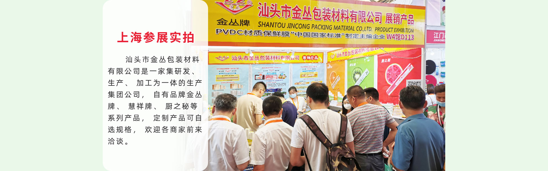 汕頭市金叢包裝材料有限公司位于廣東汕頭市金平區,主營PVDC保鮮膜、LDPE保鮮膜、PVDC腸衣膜、HDPE連卷保鮮膜、HDPE背心型保鮮袋、HDPE一次性手套,混合PE無芯垃圾袋等。